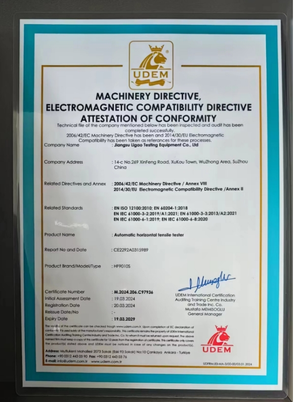 隨著市場(chǎng)對(duì)拉力試驗(yàn)機(jī)產(chǎn)品要求越來(lái)越高,出口的拉力試驗(yàn)機(jī)越來(lái)越多,很多客戶提出產(chǎn)品需要CE認(rèn)證,江蘇力高檢測(cè)設(shè)備有限公司拉力試驗(yàn)機(jī)順利通過(guò)CE認(rèn)證。
